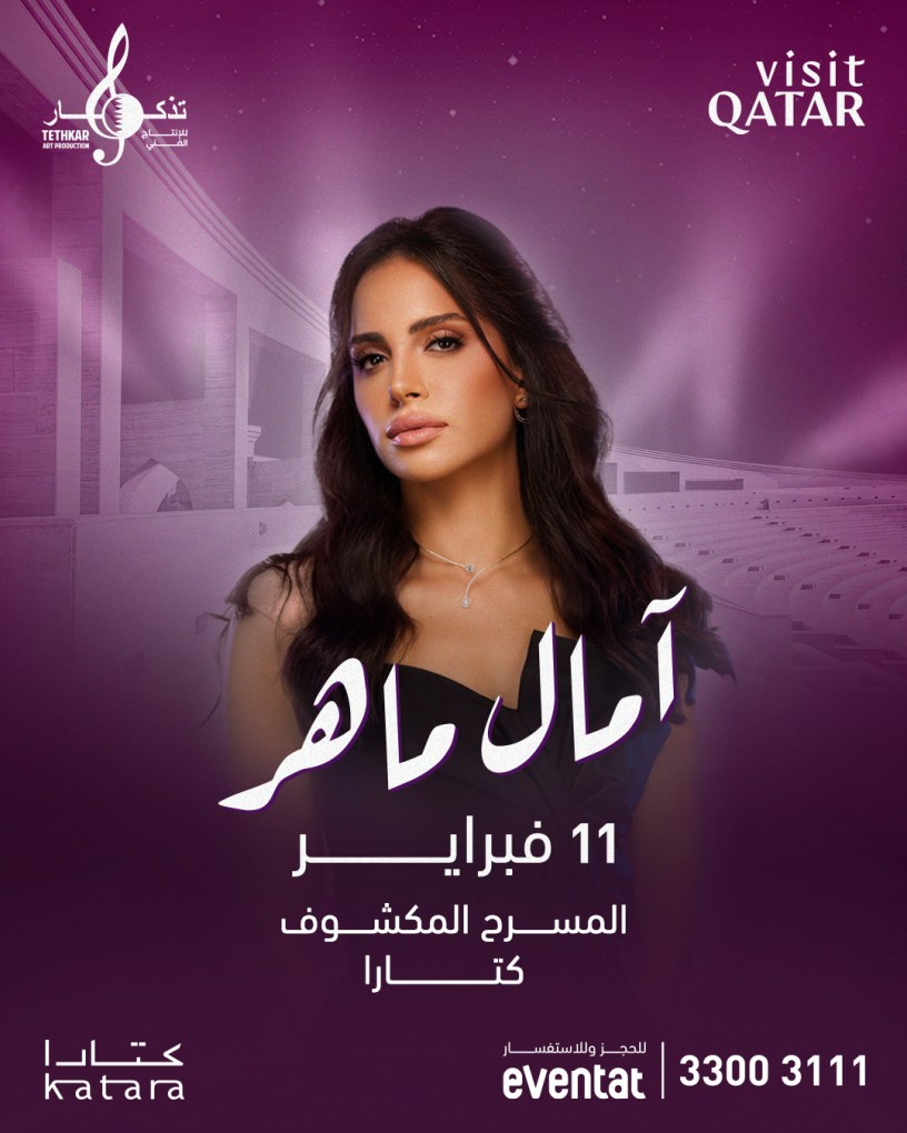 At the Katara Ampitheatre, music lovers can watch performances by Arab singers Modi and Rehab Al Shamrani on January 27, Lebanese artist Najwa Karam on February 1, Moroccan-French performer Amine Boudchar on February 8, and Egyptian singer Amal Maher on February 11. For tickets visit: https://www.eventat.com/home