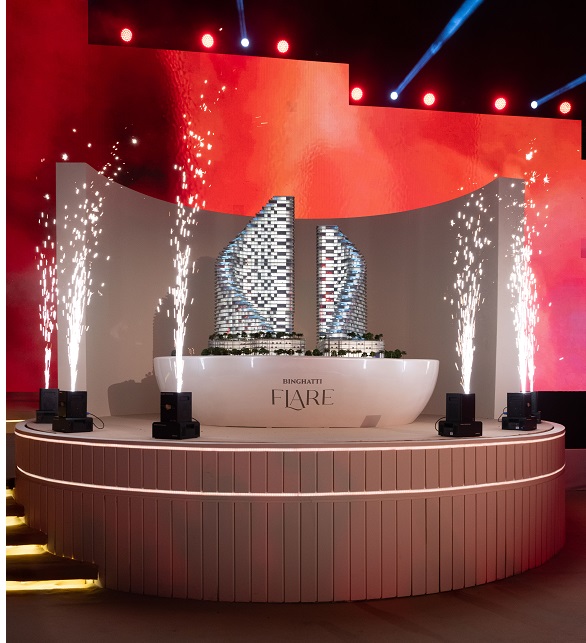 The night’s most anticipated moment came with a dramatic fireworks display and the surprise unveiling of Binghatti’s newest Dubai development, Binghatti Flare, a twin-tower architectural masterpiece, with both tower 01 & 02 having a gross value of AED 2.1 Billion.