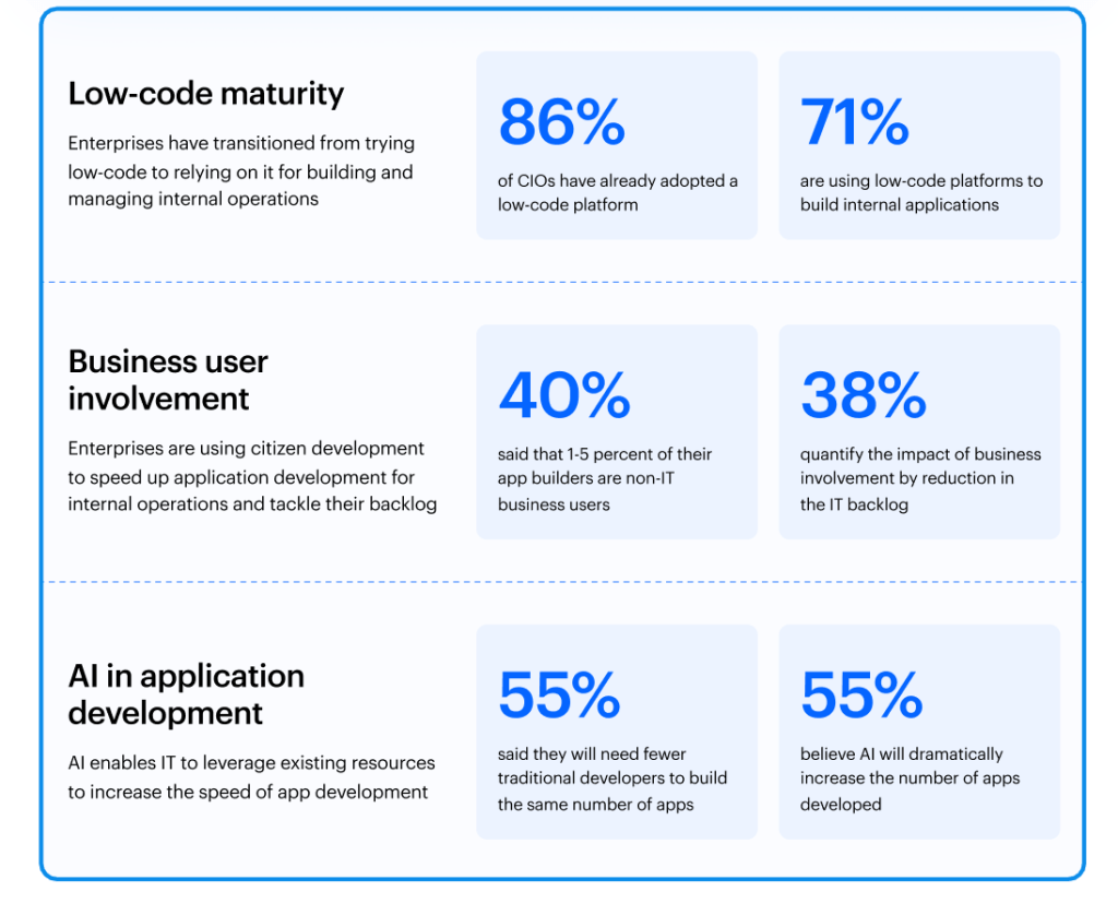 Dubai, United Arab Emirates –September 2025 – The enterprise application development landscape is undergoing a profound shift, with new research showing that CIOs are moving away from traditional development approaches to meet growing business demands. According to Kissflow’s 2025 CIO Low-Code Strategy Pulse Report, 86% of CIOs now view low-code platforms as essential to their technology strategy, while the integration of AI is expected to further transform the speed and scale of application delivery.