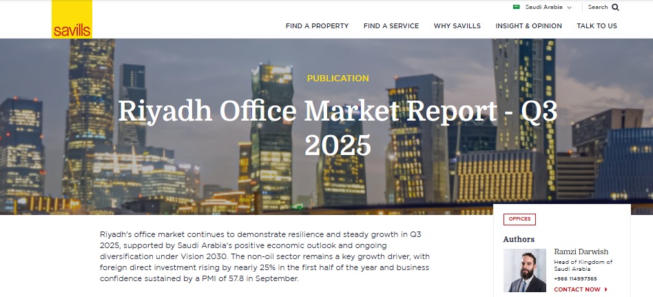 Riyadh’s office market continued to demonstrate resilience and steady growth through the third quarter of 2025, supported by Saudi Arabia’s robust economic outlook and ongoing diversification under Vision 2030, according to the latest Riyadh Office Market in Minutes Q3 2025 report from Savills Middle East.