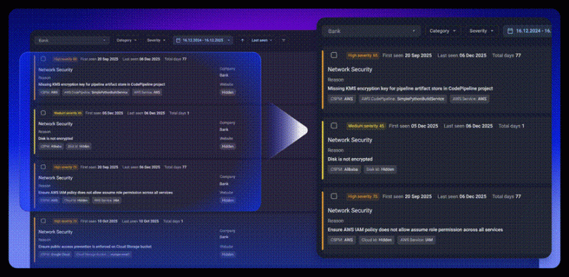 Group-IB’s Cloud Security Posture Management automatically enriches posture findings with exposure insights from Group-IB’s Attack Surface Management (ASM) and real-time Threat Intelligence (TI). This fusion of internal posture data with outside-in threat visibility highlights which cloud exposes matter most to active adversaries, and enables teams to better prioritize remediation based on adversarial relevance rather than theoretical risk. The integration is included and does not require additional ASM or TI licenses, delivering maximum value while simplifying procurement and ensuring a predictable total cost of ownership.